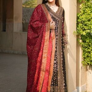 Three Piece Angrakha Style Long Pakistani Dress. New