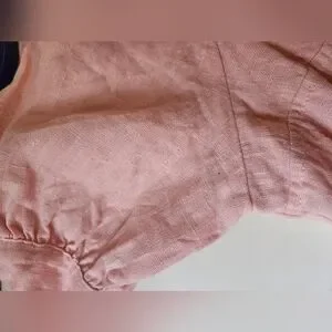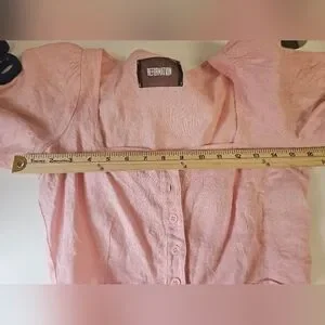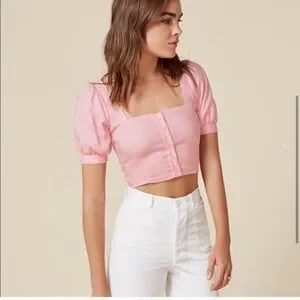 This Reformation crop top in a delightful pink hue is perfect for adding a touch of elegance to your wardrobe. Its stylish design ensures a flattering fit, making it a versatile choice for various occasions. Crafted with attention to detail, this top is both trendy and comfortable.
