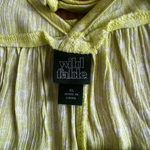 Wild Fable Boho top, size XL. Bright lime green/ yellow with a white floral pattern. 100% Rayon, you will see two unstitched areas under the arm pit. Be sure to look at measurements and ask if additional measurements are needed.