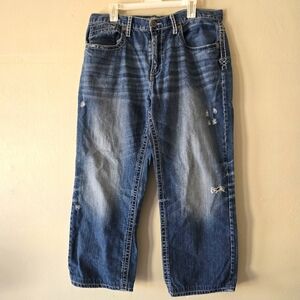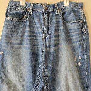 BKE DENIM SETH Distressed Denim Jeans Medium Wash Detailed Back Pockets Size 36R