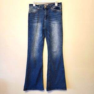FOREVER 21 Denim Bell Bottom Jeans Flared Pants Distressed Medium Wash Size 29