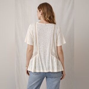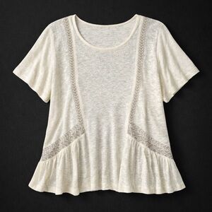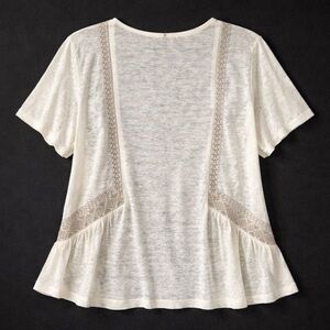 Effortlessly chic and feminine, this Akemi + Kin top from Anthropologie features a lightweight linen blend in a soft ivory tone with delicate metallic embroidered panel details. Designed with relaxed dolman sleeves and a subtle flared peplum hem, this piece drapes beautifully for a flattering, easy silhouette. The semi-sheer texture adds an airy, elevated feel—perfect for warm days or layering. Pair with denim for a casual boho look or dress it up with tailored pants for effortless everyday style.