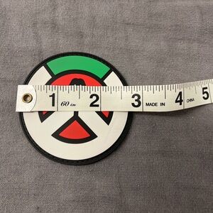 Three overwatch patches made of flexible PVC.