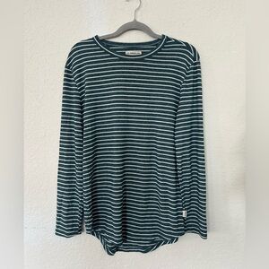 Granola Core Magellan Outdoors Teal and White Long Sleeve Striped Shirt Size M
