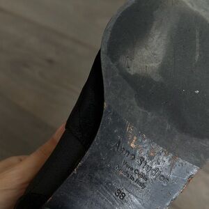 Sleek black ankle booties by Acne. Modern design with a low heel. Ideal for versatile styling.