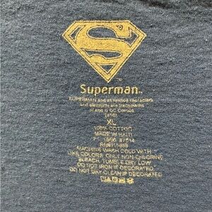 Bold blue tee with Superman emblem. Features red and yellow logo. Ideal for superhero fans.