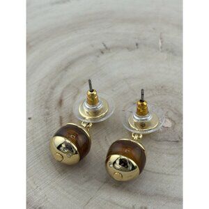 Elegant gold-tone drop earrings featuring Tiger’s Eye style beads Each earring has a polished gold-tone ball stud with a dangling spherical Tiger’s Eye bead capped in gold-tone metal, creating a timeless and versatile look.