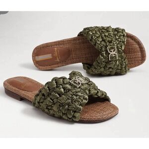 The Sam Edelman Bridget slide sandals in moss green, size 7.5, are a stylish and comfortable option for women. The braided upper material and slide style give these sandals a trendy and easy-to-wear look. The moss green color adds a pop of freshness to any outfit, making them a versatile choice for everyday wear. 22232. 021026