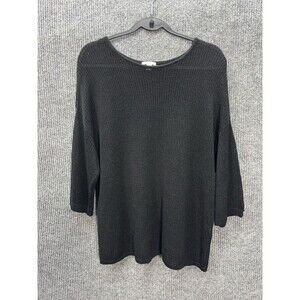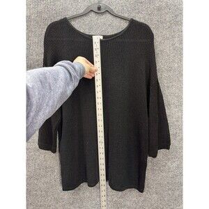 J Jill Open Knit Linen Blend Top Womens XL Black 3/4 Sleeve Round Neck Cover up. Excellent pre-owned condition with no flaws found. Measurements in photos. Fast shipping!