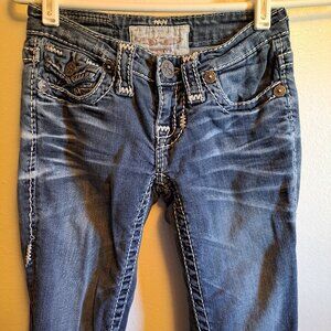 Big Star Jenae Skinny Lowrise Distressed Embroidered Flap Pocket Denim Jeans. Pre-owned condition Size 23R *see Pictures for measurements