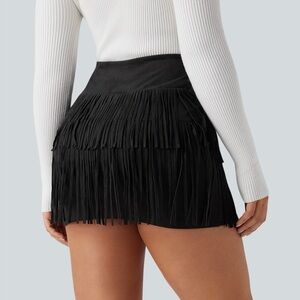 HALARA Crossover High Waisted 2 in 1 Suede Fringe Skirt Black XL