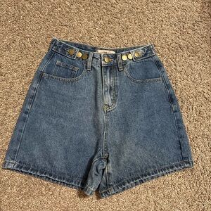 Upgrade your style with these high waist blue denim shorts. Perfect for a chic and comfortable look.