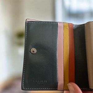 Coach 89311 Small Snap Wallet With Colorblock Interior Pine Green Multi