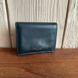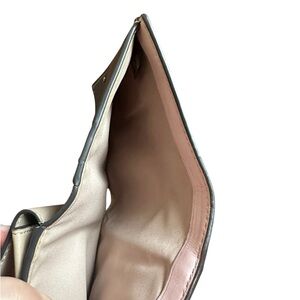 Crafted of polished pebble leather with a colorblock interior, this small bifold wallet easily fits into a compact wristlet or crossbody bag. Secured by a snap closure, the petite design is perfectly organized to hold cards, cash and receipts. Only one call out on the interior leather. Please see pictures.