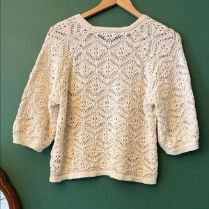 Simply Vera Vera Wang Cream Crochet Womens S Sweater Boho Festival Vibes