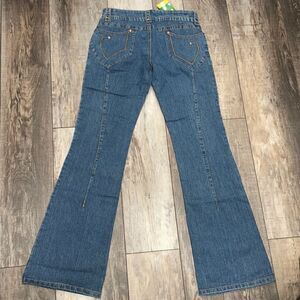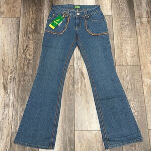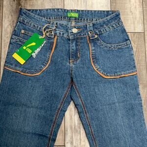 NWT Y2K G!nger Jeans Blue with Orange And Red Embroidered Stitching Size 10