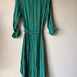 Maeve Anthropologie shirt dress green stripe button down belted size 2 nwt