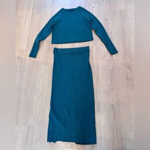 PRETTYGARDEN Women’s Dark Green 2 Piece Ribbed Cropped Sweater & Maxi Skirt Set
