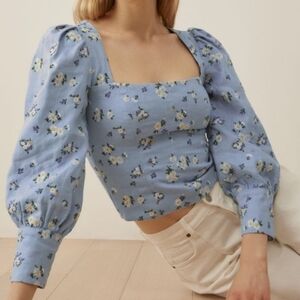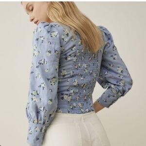 Keywords: Rachel Zoe, floral corset top, long sleeve crop top, blue floral print, women’s medium, chic crop top, vintage-inspired floral, wardrobe staple.