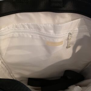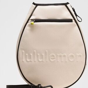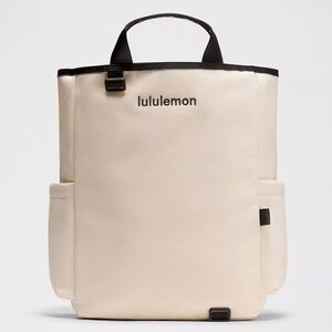 Stylish Lululemon backpack in cream with black accents. Perfect for everyday use.