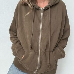 100% cotton. So super soft. Olive green with hood and adjustable drawstring. Zip up with front Kango pocket.