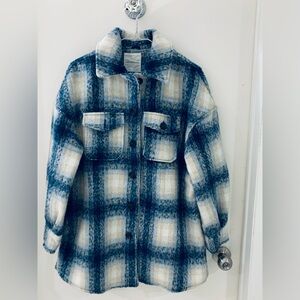 Soft cozy shacket in beautiful blues. Ptp 20, length 26. One pocket button is missing