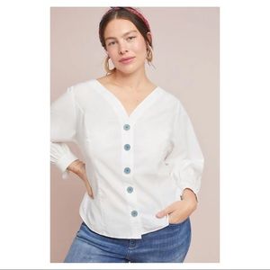Maeve White Blouse with Blue Buttons