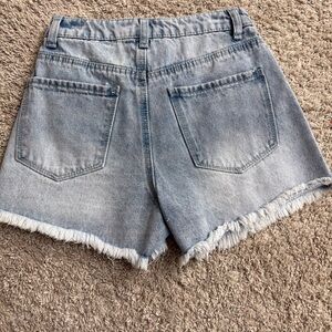Stylish embroidered denim shorts perfect for casual outings. Features a beautiful floral design on light blue denim. Ideal for adding a touch of elegance to your summer wardrobe.