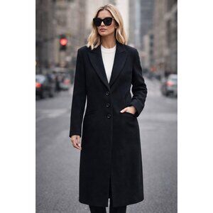 Designer tailored wool blend coat