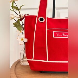 Add a pop of color and charm to your everyday carry with this Vera Bradley red and white canvas tote bag.