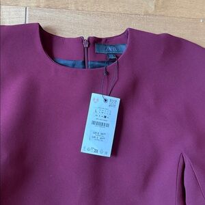 Chic burgundy dress with a round neckline. Ideal for versatile styling.