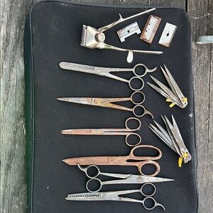 Vintage (4) scissors (2) thinning shears (14) extra blades manual clippers