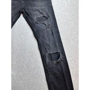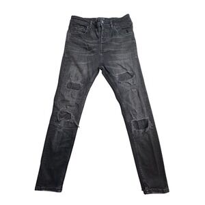 Zara Man Distressed Skinny Jeans Mens 30x26 Faded Black Denim Button Fly USA