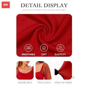 Mesh Long Sleeve Blouse Square Neck Puff Sleeve Stretchy Fabric