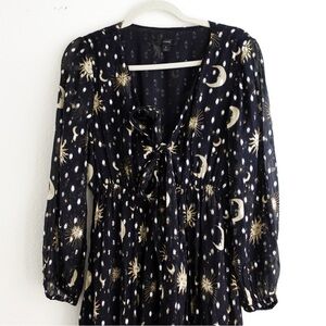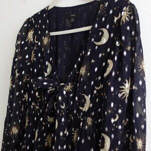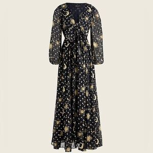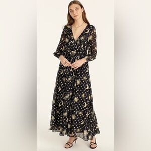 J. Crew Black and Gold Long Sleeve Celestial Dress S