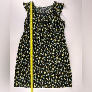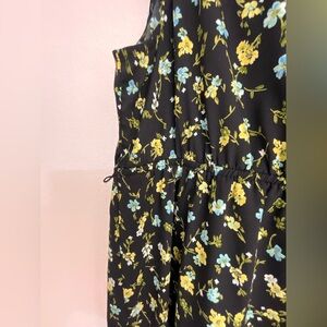 Beautiful black maternity dress with cap sleeves and yellow/blue floral details. Lined for extra comfort and coverage.
