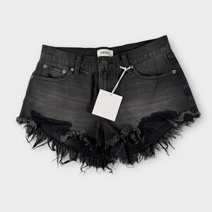NWT Pistola Gigi denim shorts size 26 in Night Hour black. These low rise cut off shorts feature heavy distressing and a raw frayed hem.