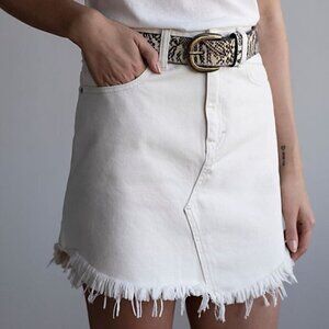 * We The Free, Raw Fringe Hem, Rigid Denim, Five Pocket Style, Button Closure & Zip Fly,