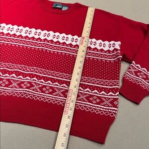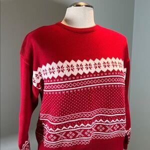 Vintage Red Fair Isle Embroidered Cotton Sweater Long Sleeves Crew Neck Nordic