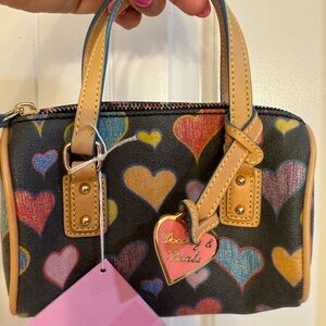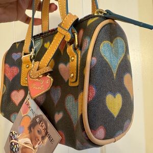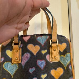 Chic and playful, this Dooney & Bourke bag features a vibrant heart print. Perfect for adding a pop of color to any outfit. Please review all photos carefully. If you have any questions please ask, no returns. Open to reasonable offers. Y2K perfect for the collector. 🩷💙💜