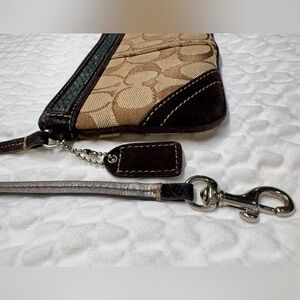 COACH Brown Suede & Signature Monogram Jacquard Beaded Wristlet w Hangtag GUC 🤎