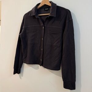 MONROW Supersoft Fleece Cropped Trucker Jacket in Black XS