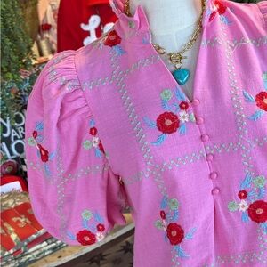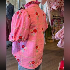 NWT. Chic and stylish pink blouse with floral embroidery. Perfect for adding a pop of color to your wardrobe.