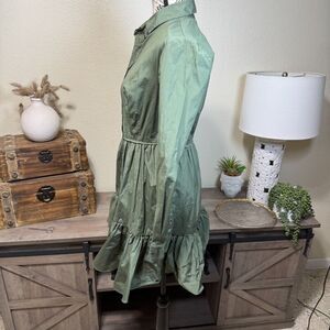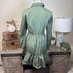 Veronica Beard Delbie Cotton Fit-And-Flare Shirt Dress Stone Army Green Size 6