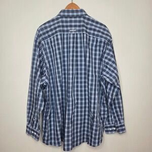 Ariat Mens XXL Wrinkle Free Plaid Button Down Shirt Gray Blue Long Sleeve Logo