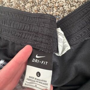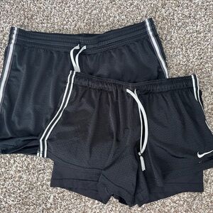 Bundle of two Nike Dri-FIT athletic shorts in size Large. Classic black with white stripe detail and built-in liner. Perfect for gym, running, or summer workouts.