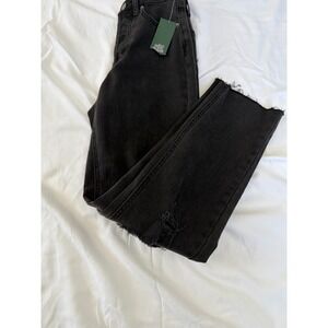 Wild Fable Super High Rise Straight Jeans in classic black. Designed with a flattering high-rise waist and straight leg fit. Features distressed knee details, raw hem finish, 5-pocket styling, and button with zip closure. Perfect for casual outfits, street style looks, or everyday wear. Size 00 - 27" inseam. Good condition.