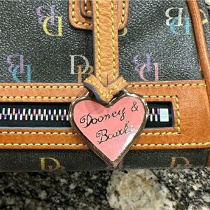 NO CALL OUTS❣️This is a vintage Y2K Dooney & Bourke Signature black rainbow zip mini bowler handbag with a heart charm.