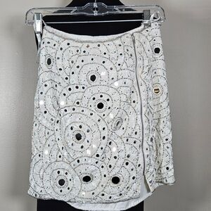 Sherri Hill Mirrored Beaded Mini Skirt Zipper Front Boho Glam Formal Statement