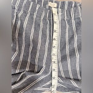 Chic blue cropped pants with white stripes. Perfect for versatile styling. No size tag but looks like an extra small. The measurements are in the listing
